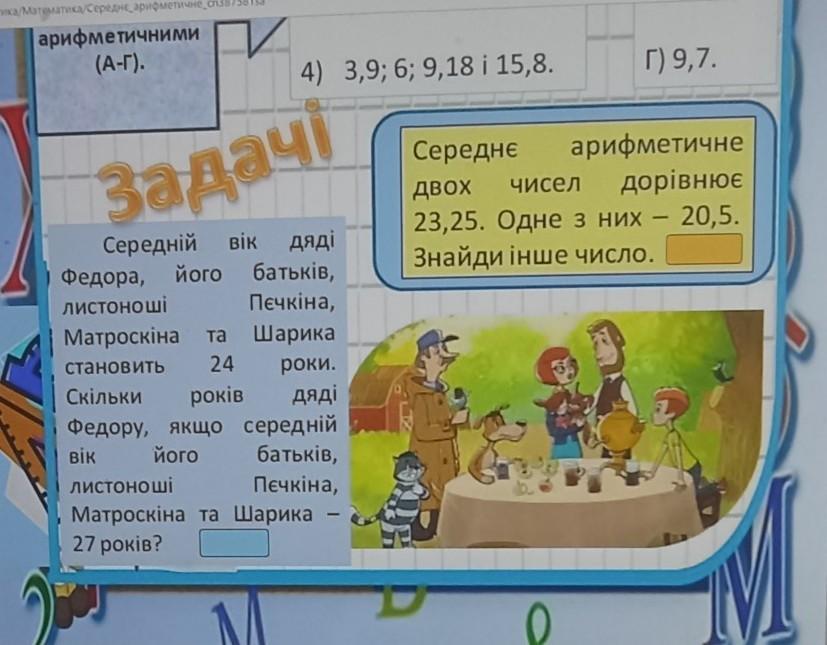 Середнє арифметичне двох чисел дорівнює 23,25. Один із них дорівнює 20,5. Знайдіть інше число.