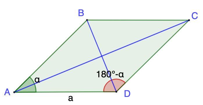 BD² = AB² + AD² - 2·AB·AD·cos α = a² + a² - 2a²· cos α = 2a²(1 - cos α)