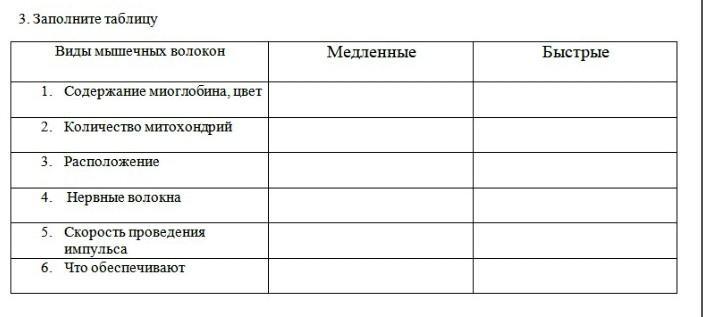 Что обеспечивают: Медленные волокна обеспечивают длительную, но низкую силу сокращения мышцы, а также выносливость мышцы. Быстрые волокна обеспечивают быструю, но сильную силу сокращения мышцы, а также быстрое развитие силы и скорости.