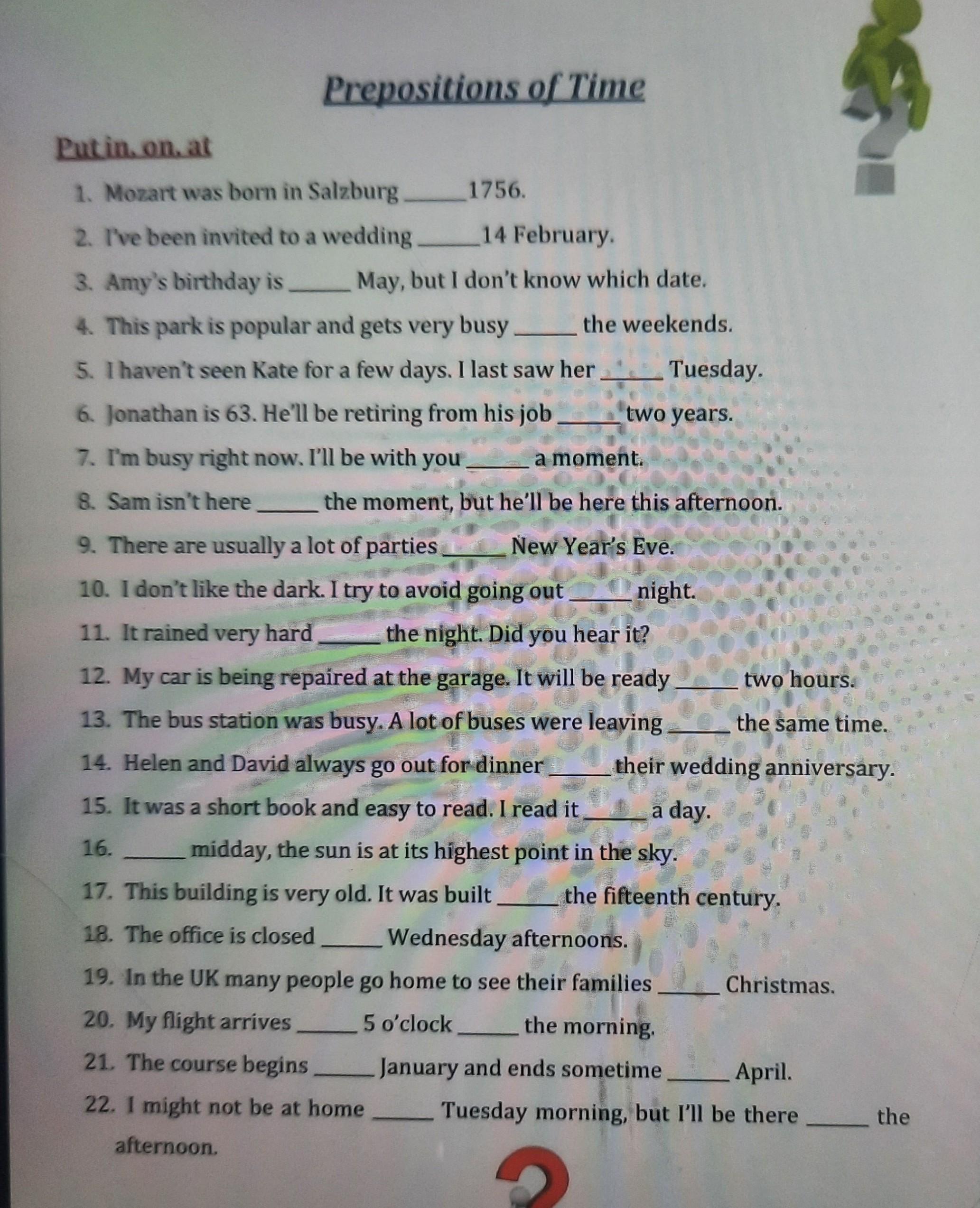 Помогите СРОЧНО, надо ставить on,in,at помогите