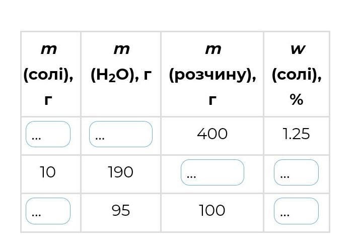 Biдnовiдь: W(coлi) = 5%; m(p-нy) = 200 г