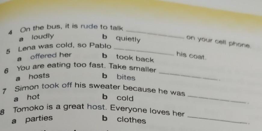 5. Lena was cold, so Pablo offered her his coat.