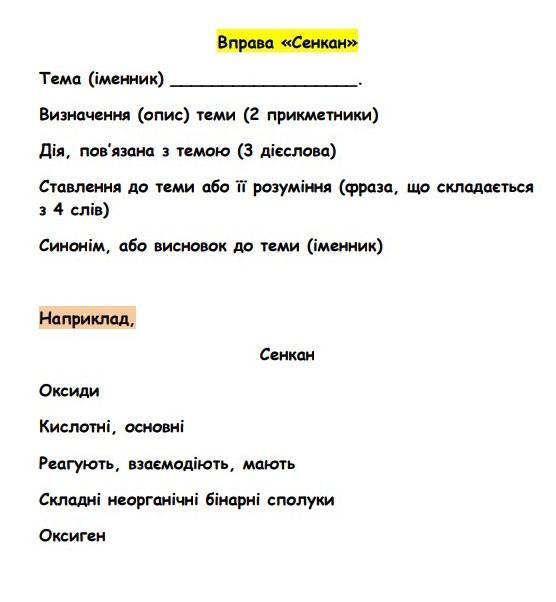 5 рядок- синонім, висновок до теми( 1 іменник)
