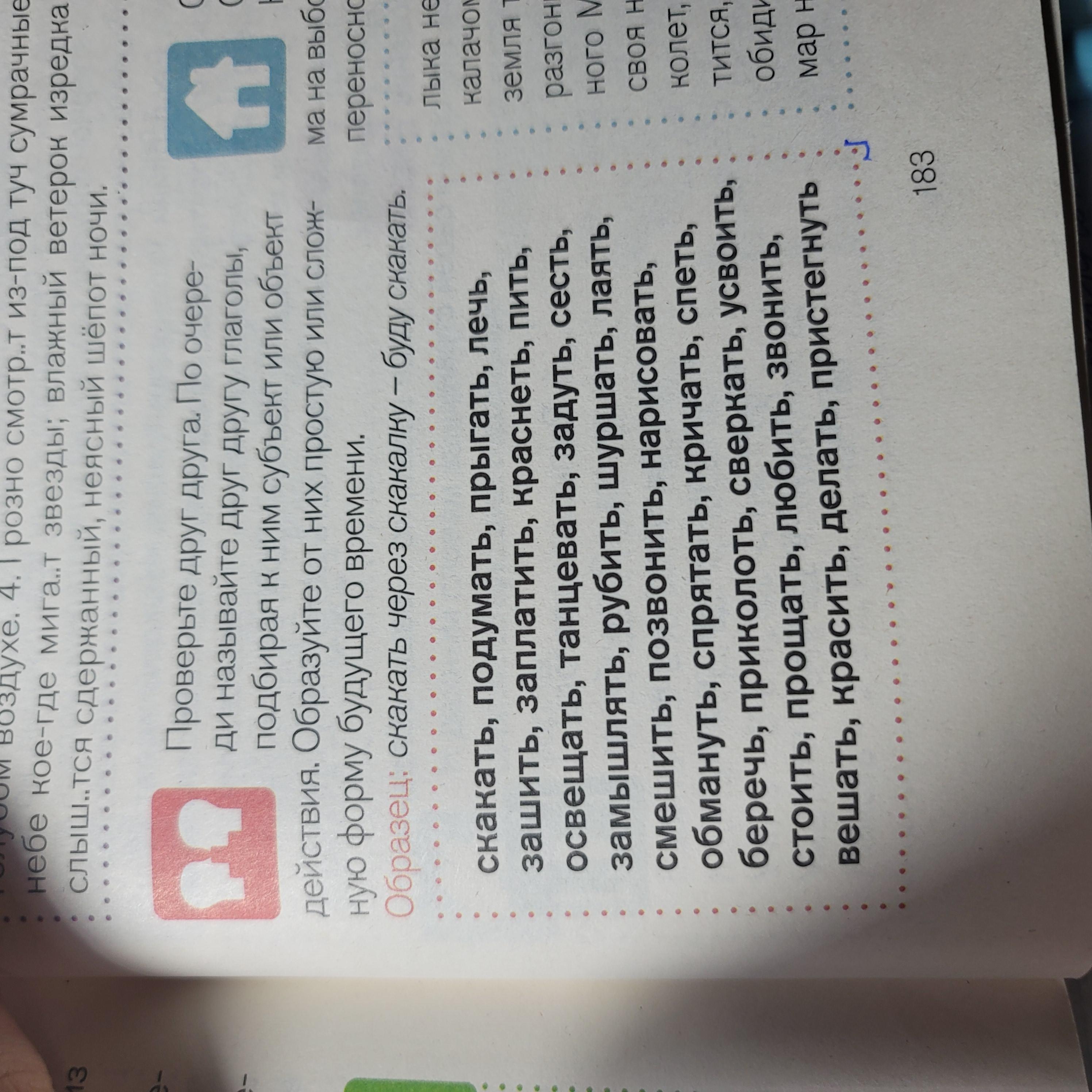 Объяснение:буду скакать буду думать буду прыгать буду лежать буду зашивать буду платить буду краснеть буду пить буду освещать буду танцевать буду задувать буду садиться буду замышлять буду рубить буду шуршать
