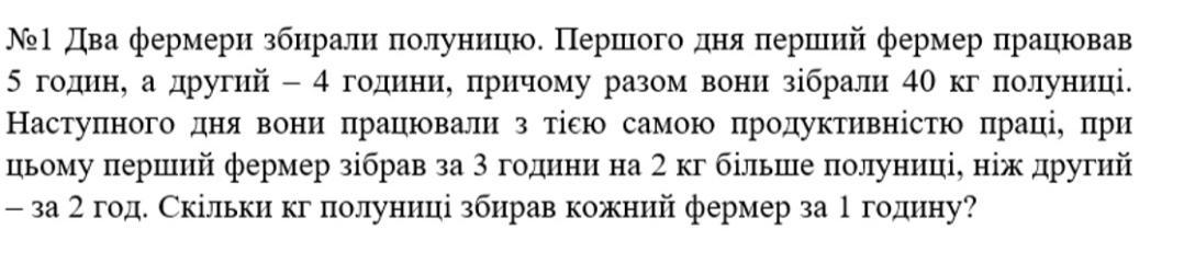 дорівнює х кг/год, а другого фермера - у кг/год. ⇒
