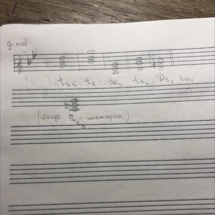 побудувати акордову послідовність в соль мінорі (гарм.): t53-t6-S53-t64-D53-t64 (будь ласка, фото)