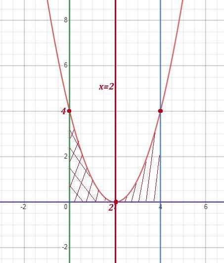 Область симметрична прямой х=2 , поэтому можно подсчитать объём половины тела и удвоить его .