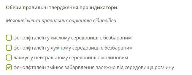 фенолфталеїн змінює забарвлення залежно від середовища розчину