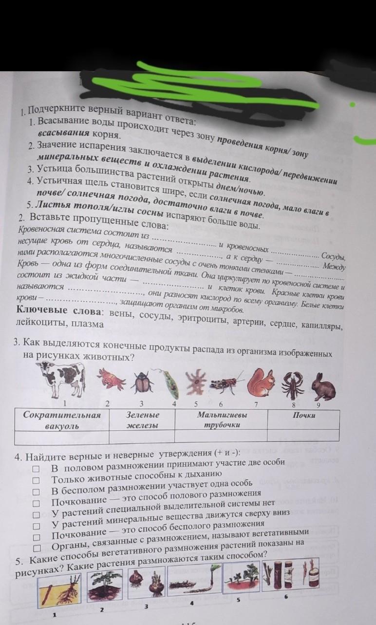 3)сократительная вакуоль-5, зеленые железы-8, мальпигиевы трубочки 2,3,6, почки 1,7,9