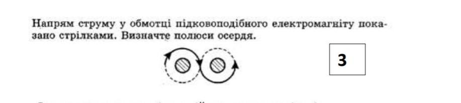 Напрям струму у обмотці підковоподібного електромагнітну показано стрілками. Визначте полюси осердя