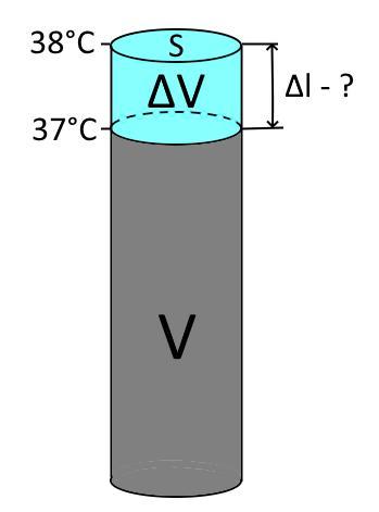 Высота цилиндра в капилляре между делениями 37°C и 38°C равна: