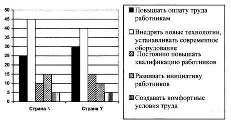 Социологические службы стран X и У провели опрос общественного мнения. Участникам был задан вопрос: «Что, по вашему мнению, необходимо предпринять прежде всего для повышения эффективности производства?»
