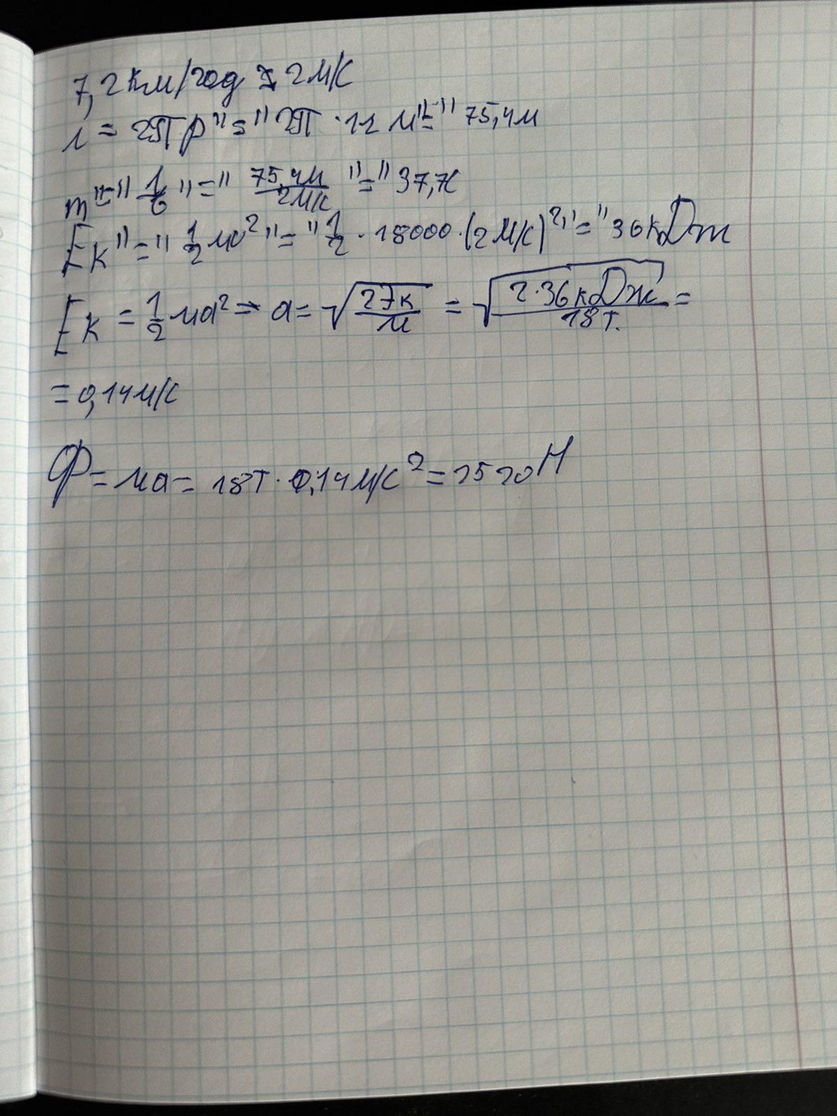 З якою силою в горизонтальному напрямі тисне вагон трамвая на зовнішню рейку, якщо він рухається по закругленню радіусом 12 м зі швидкістю 7,2 км/год? Маса вагона 18 т.