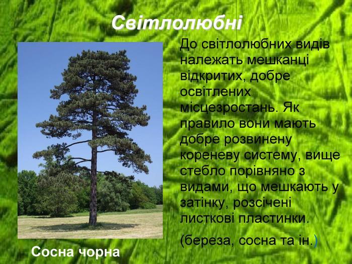 Сосна-світлолюбна,темнолюбна,вологолюбна,темновитривала-