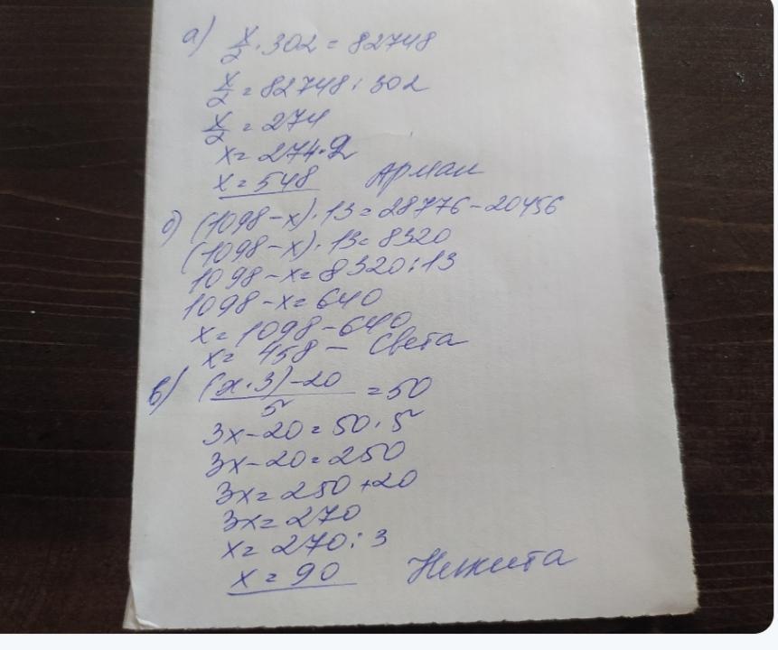 a) x : 2 * 302 = 82748 ; 548 задумал Арман