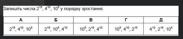 2¹⁵ ; 10⁵ ; 4¹⁰