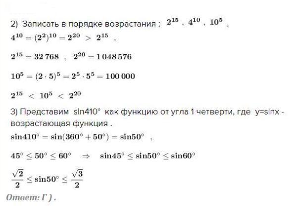 3) Представим sin410° как функцию от угла 1 четверти, где y=sinx - возрастающая функция .