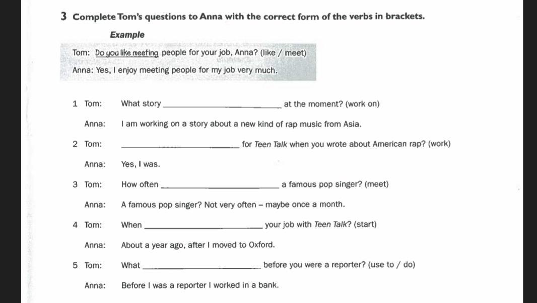 1. T: What story are you working on at the moment ?