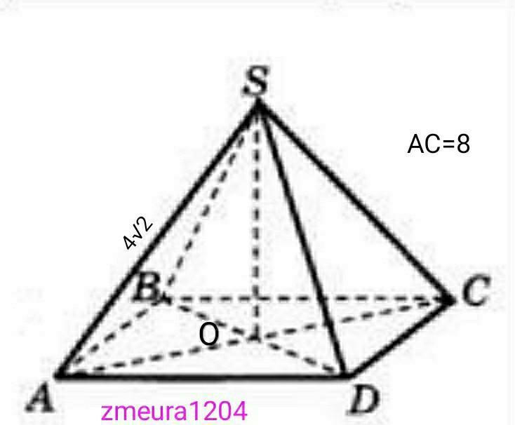 SO=√(AS²-AO²)=√((4√2)²-4²)=