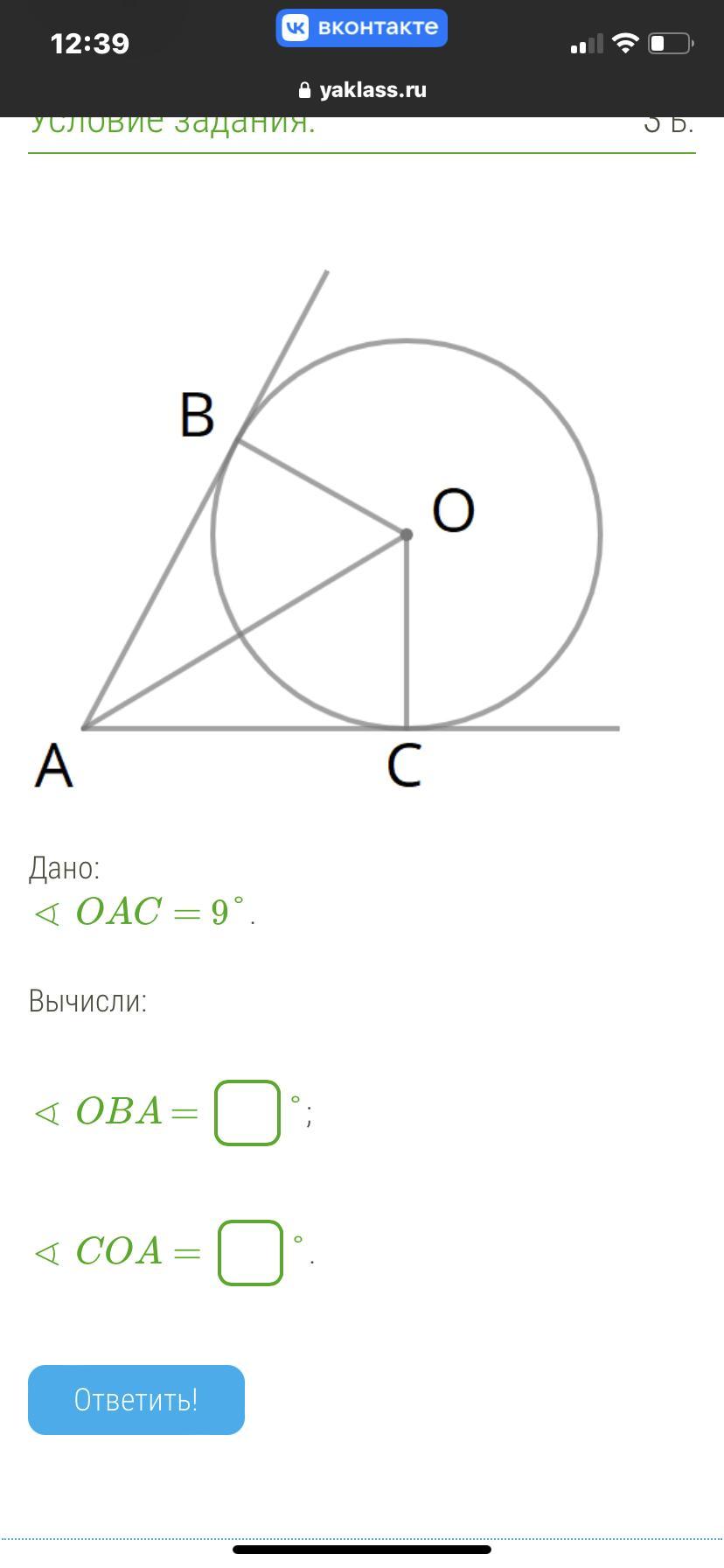 ∠ОВА=90°; АВ- касательная