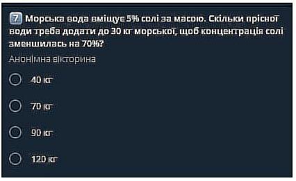 2) В 30 кг морской воды содержится 5% соли . Это будет составлять