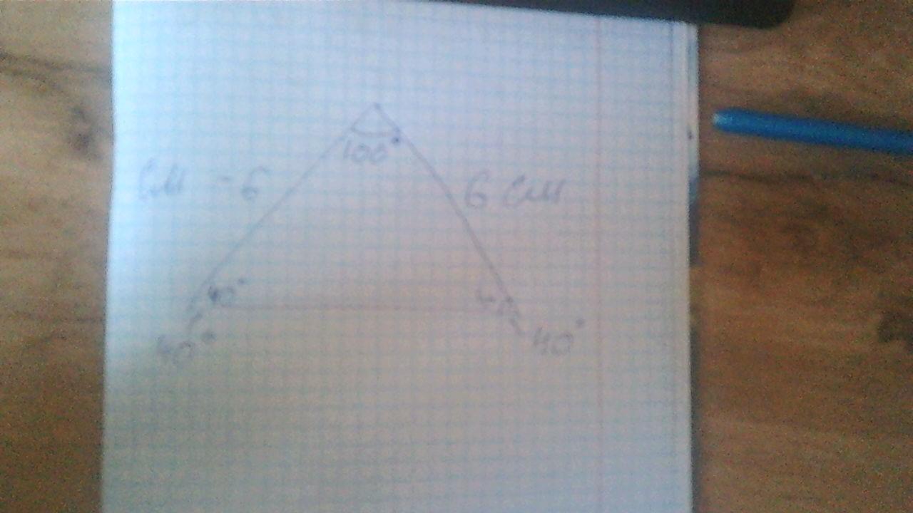 1.одна його сторона дорівнює 6 см, а кути, що прилягають до цієї сторони, по 40°.