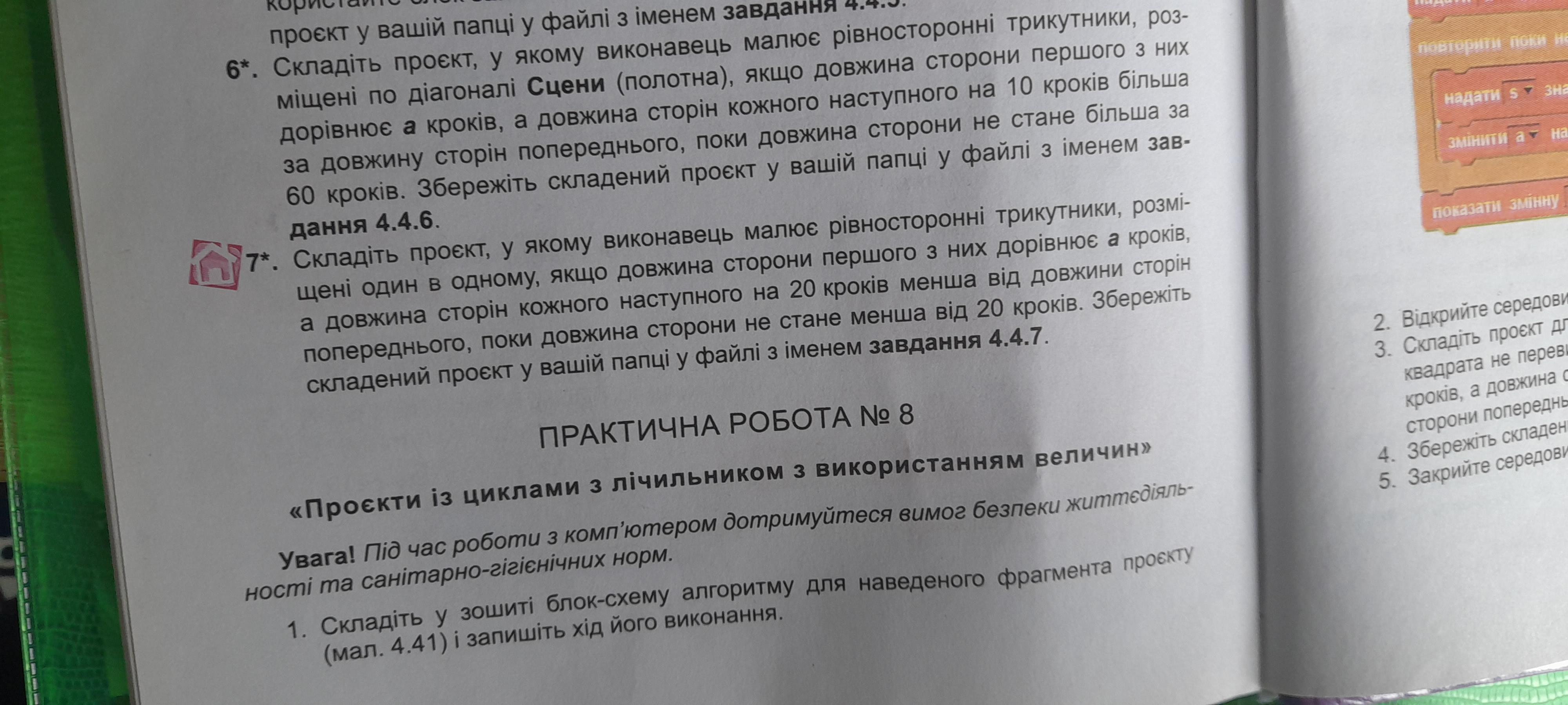 Складіть проект, у якому виконавець малюе рiвносторонні трикутники, розміщенi один в одному, якщо довжина сторони першого з них дорівнюе а кроків а довжина сторiн кожного наступного на 20 кроків менша від довжини сторін попереднього, поки довжина сторони не стане менша від 20 кроків. СКРЕТЧ (СКИНУТИ ФОТО)