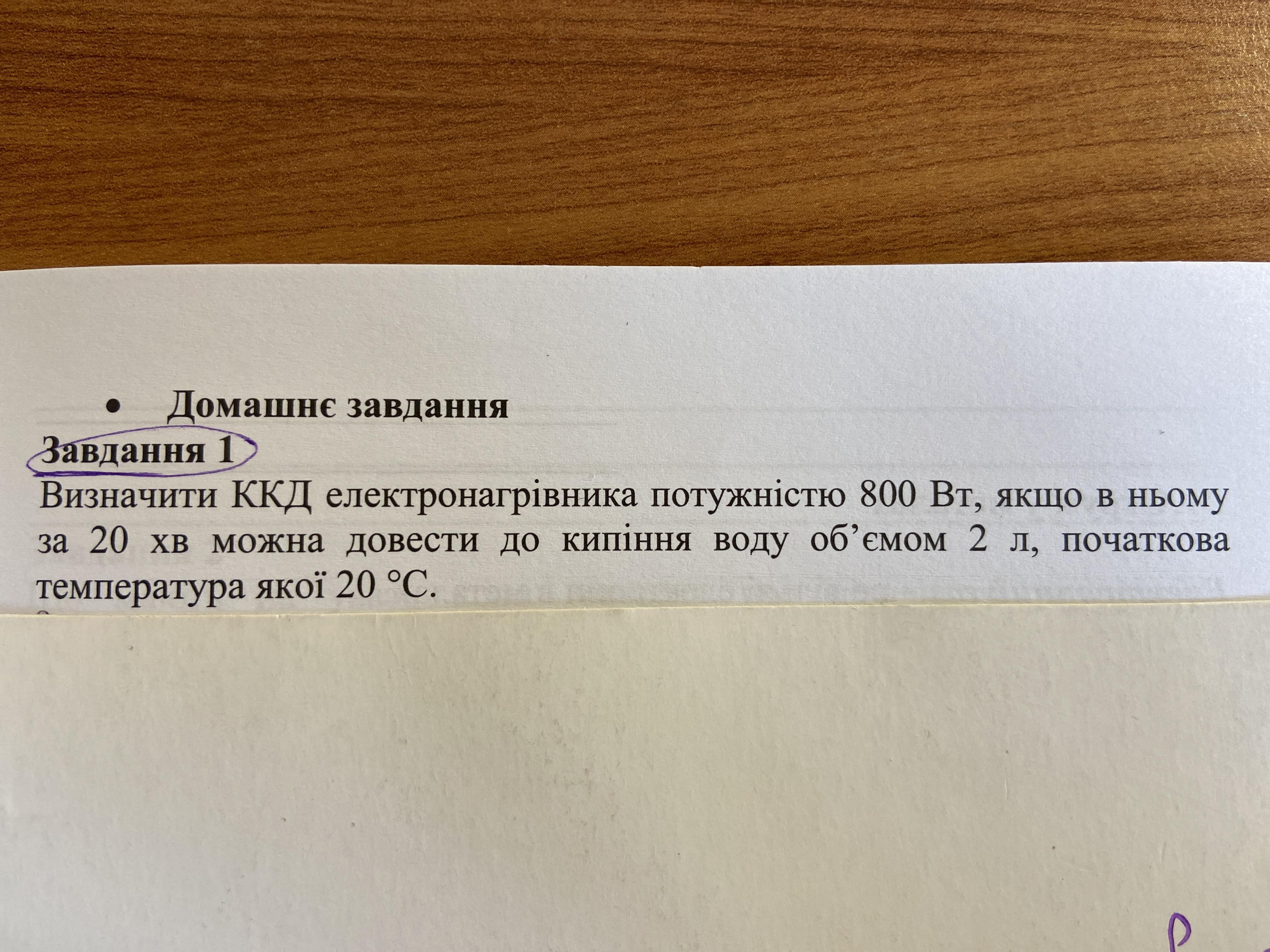 η = cρV(t₂-t₁)/Pτ = 4200*10³*10⁻³(100-20)/800*1200 = 0,35 = 35%