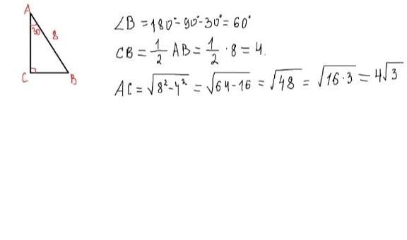 В прямокутном треугольнику против угла в 30° лежит катет, равный половине гипотенузы..
