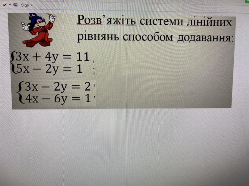 13х=13 => х=1 , підставимо х в перше рівняння 3+4у=11 => у=8÷4=2