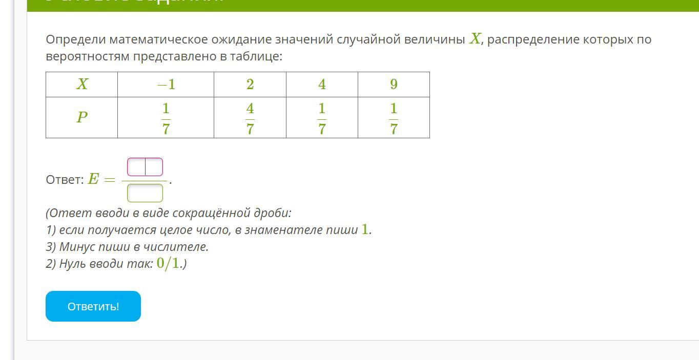 Определи математическое ожидание значений случайной величины X, распределение которых по вероятностям представлено в таблице: