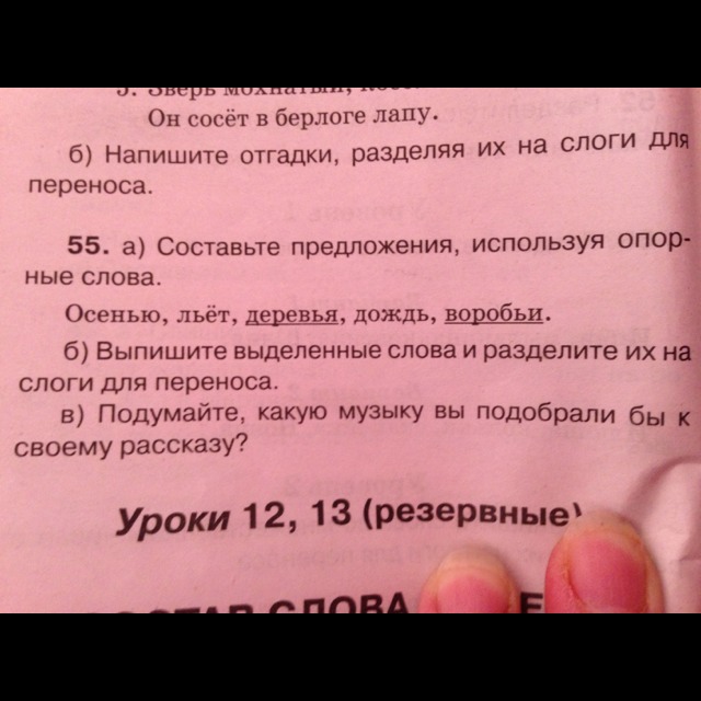 Составьте предложения используя опорные слова: осенью, льет, деревья, дождь, воробьи