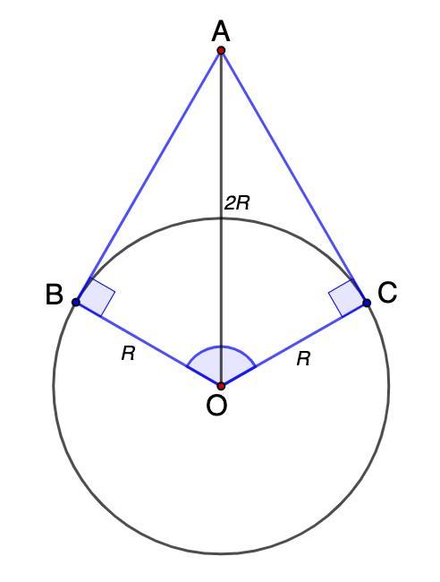 К окружности с центром в точке О провели две касательные АВ и АС из точки А так, что В и С - точки касания. Определите