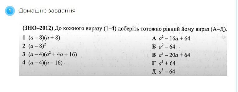 3) (a-4)(a²-4a+16) => Д) a³-64.