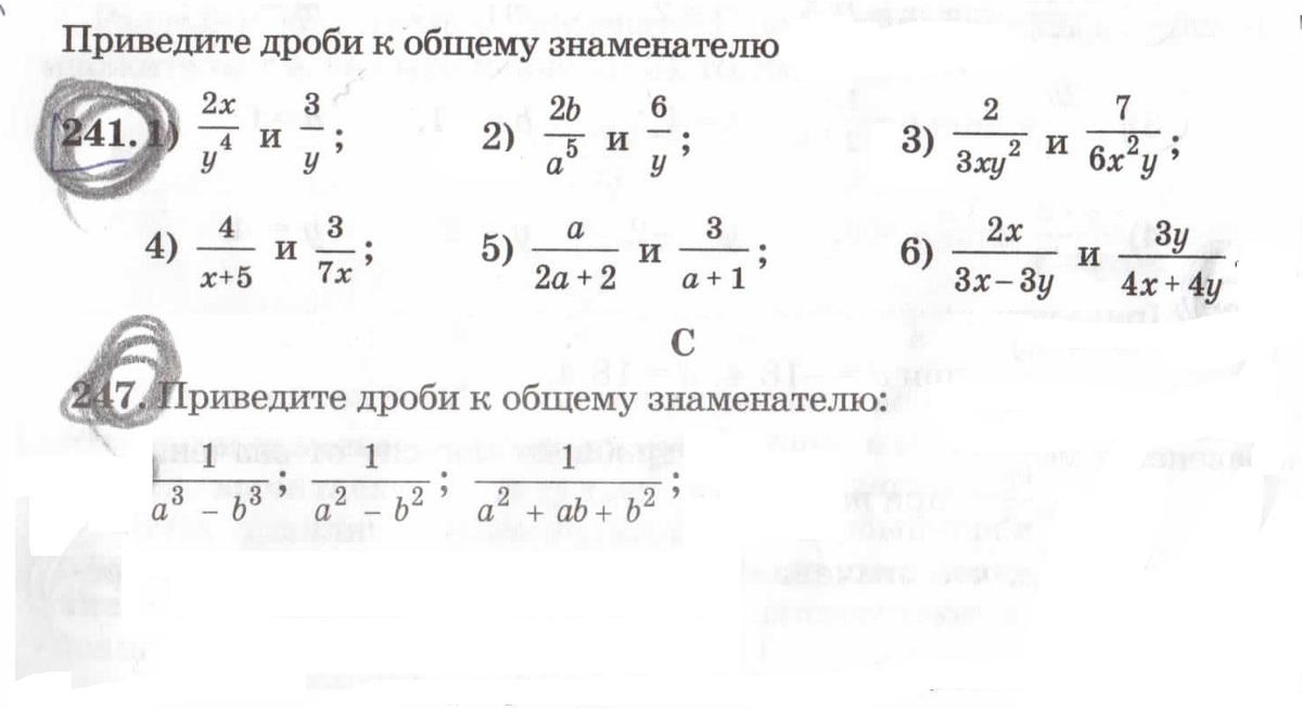 1. 2x/y^4 и 3y^3/y^4