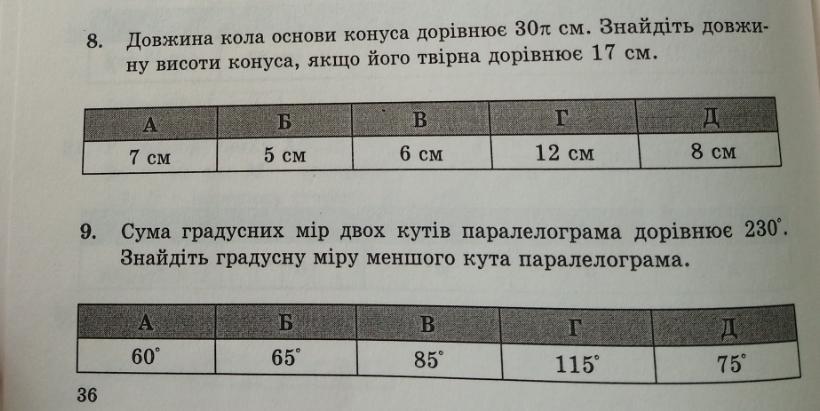 9. 230° - будет сумма 2-х противоположных углов параллелограмма, так как сумма смежных всегда равна 180°.