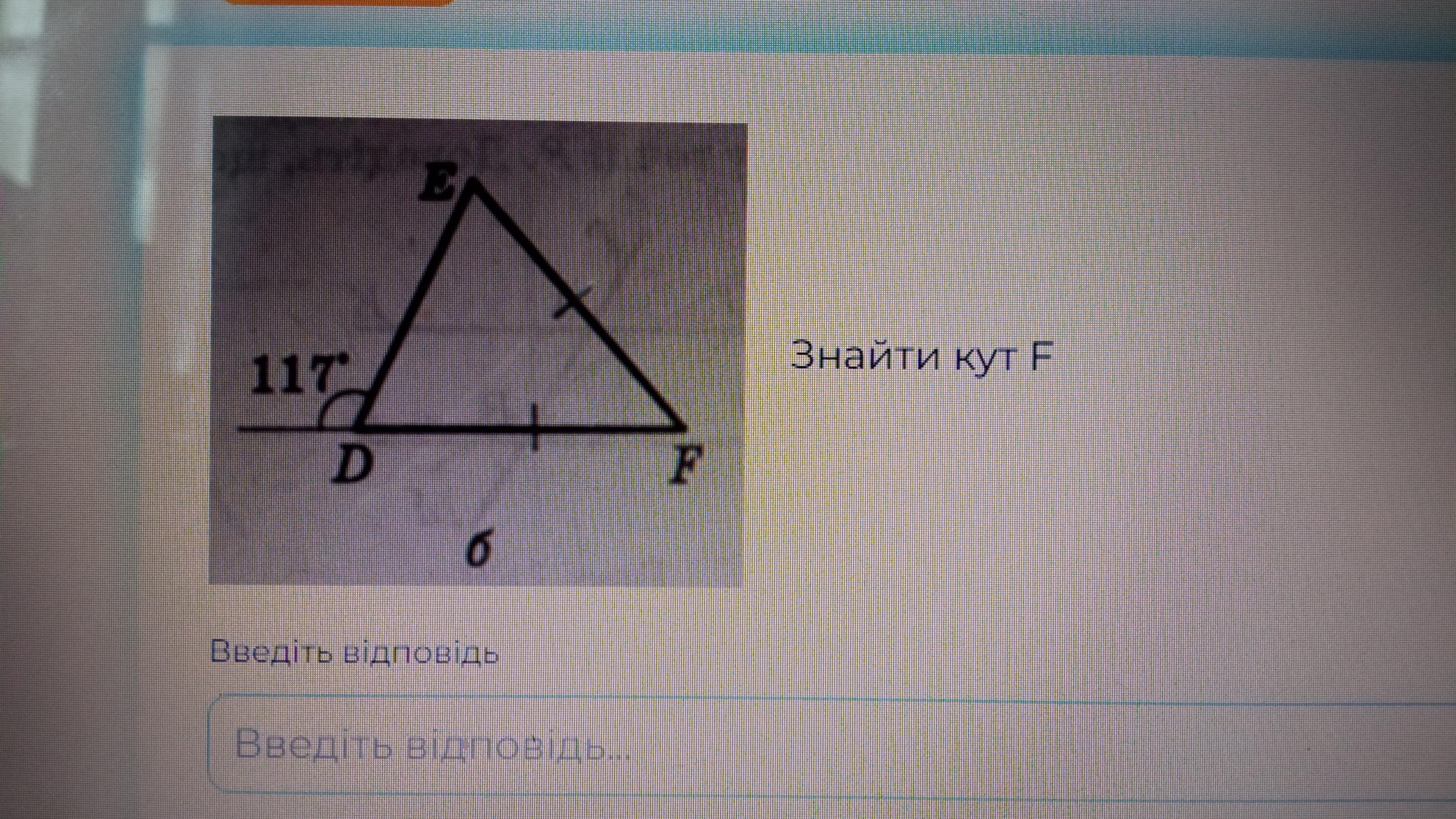 180-117=63 поскольку у рівнобедреного трикутника сторони та кути рівні тоді 63+63=126