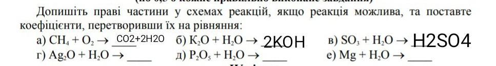 Допишіть праві частини у схемах реакцій, якщо реакція можлива, та поставте коефіцієнти, перетворивши їх на рівняння