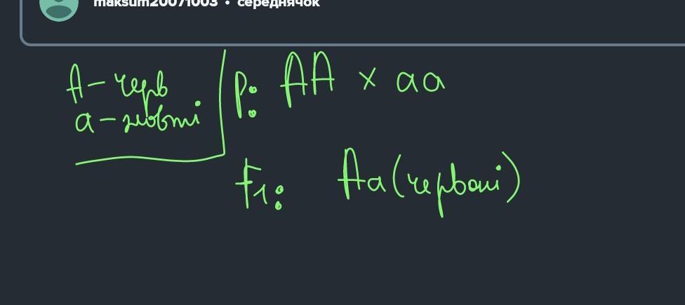 Сорт яблук з червоними плодами схрещено з сортом, який має жовті плоди. Потомство має червоні плоди. Визначте генотипи батьків.