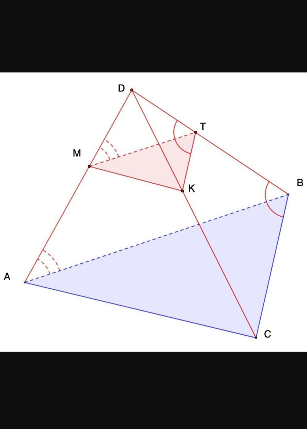 точка Д не належить площині трикутника АВС. Точка М,Т,К належать відрізкам ДА,ДВ,ДС відповідно і такі,що кут ДАВ=куту ДМТ, кут ТДК=куту ДВС. Довести,що площина МТК паралельна площині АВС.