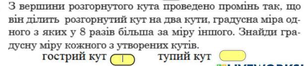 Нехай коефіцієнт буде Х, тому той кут який у 8 разів більше буде 8х, а менший х: