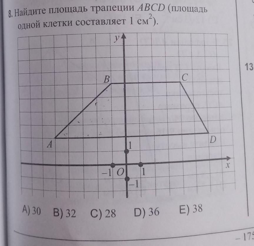 Полусумма оснований(по клеточкам посчитать надо) 16:2=8