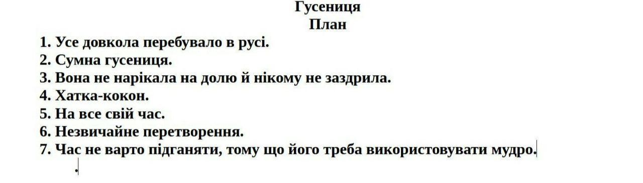Але ця гусениця не нарікала на долю та нікому не заздрила. Вона просто переживала свій власний процес змін, який мав наступити у її житті. Часом її думки поринали у роздуми про майбутнє, що настане після змін.