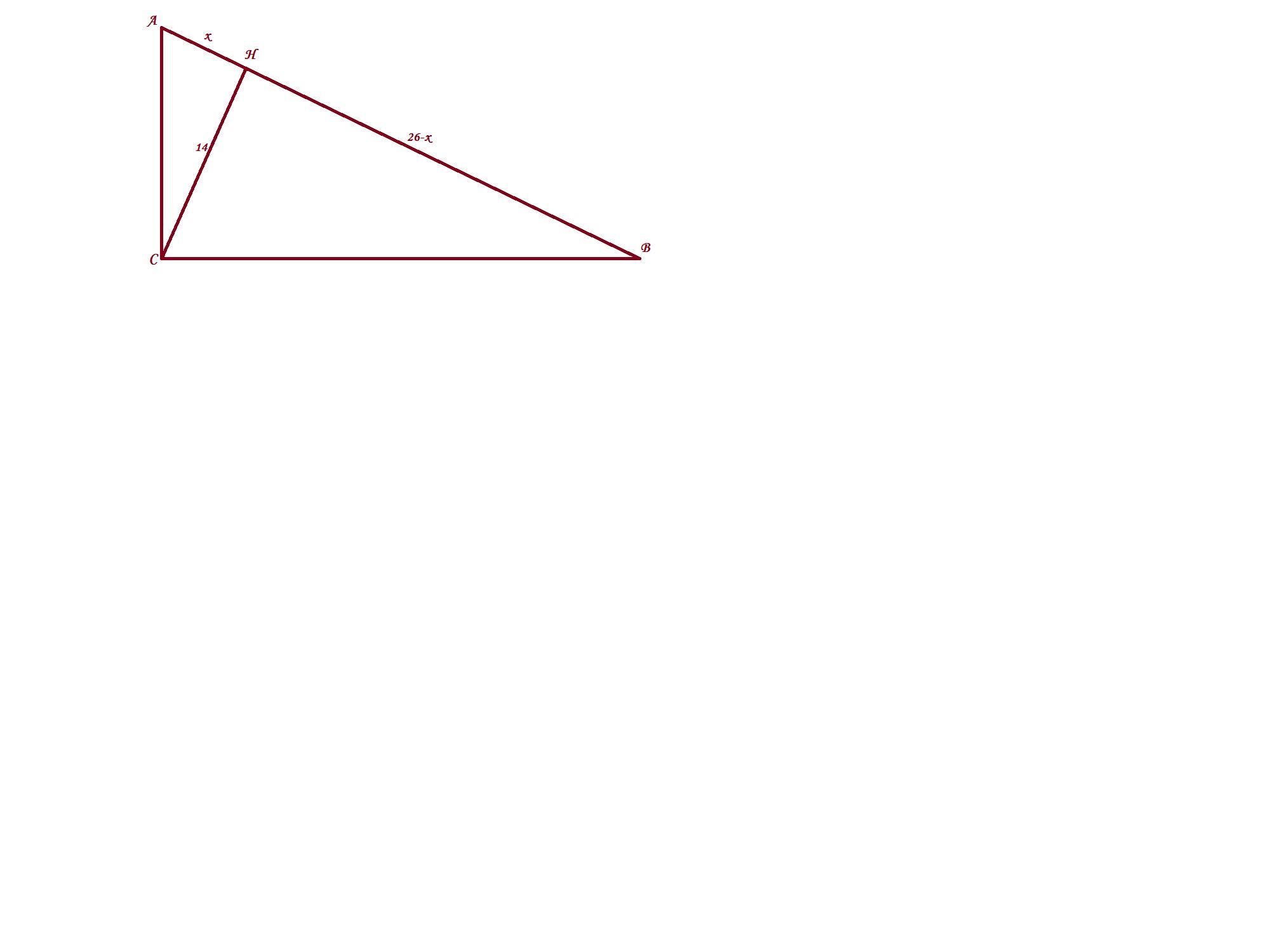 Якщо АН=х см, тоді ВН=26-х см.
