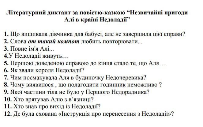 1 рушничка,2 недопопелюшка,3 Галя,4 не доведені до ладу справи,5 пришила бабці крильце,6 Недороль десятий,7 морозивом,8 Недорадник заховав стрілку від годиника,9 голови,10 недопопелюшка,11 недороль,12 у чарівній книзі