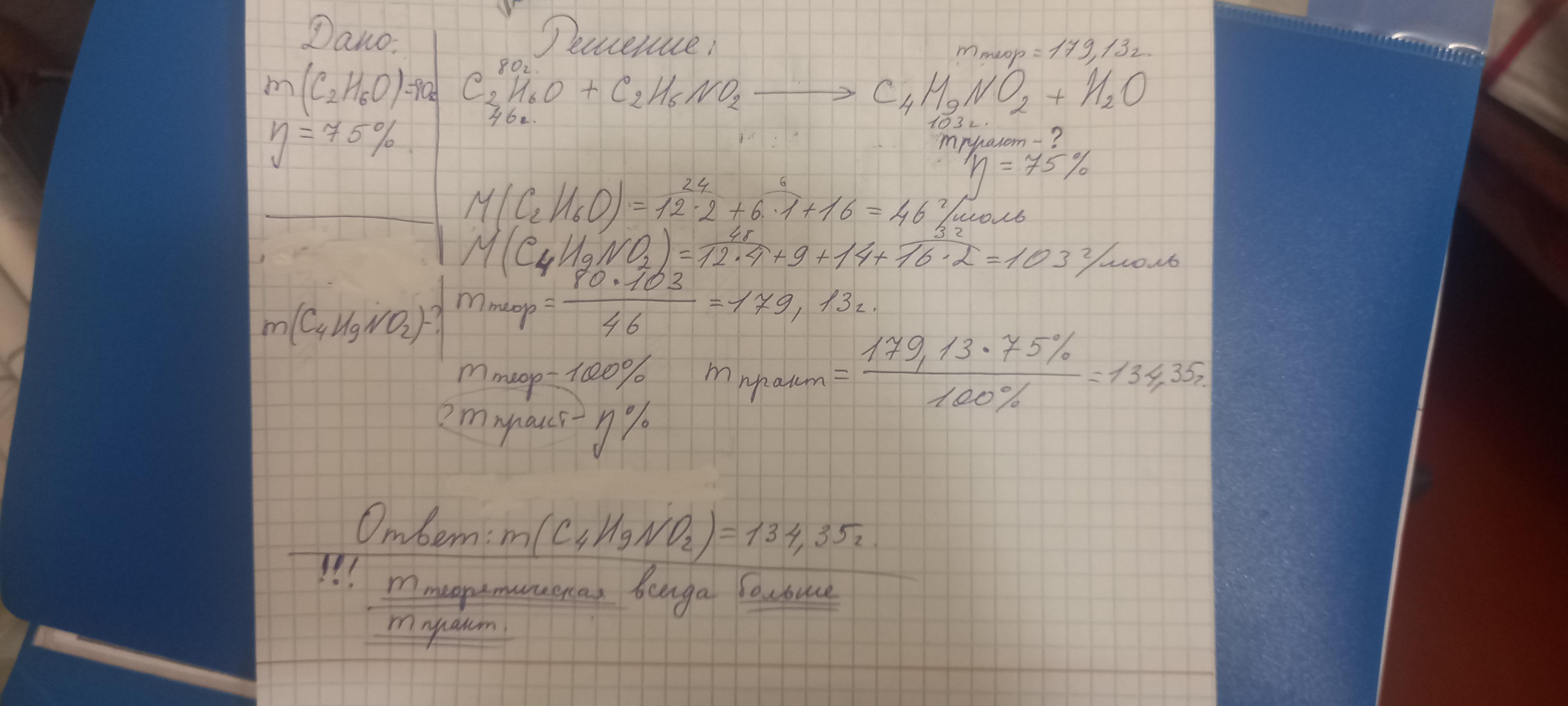 найти массу этилового спирта аминоуксусной, полученной при взаимодействии 80 г этиловго спирта с аминоуксусной кислотой, если массовая доля выхода продукта реакции состовляет 75% ( с дано решением и ответом )