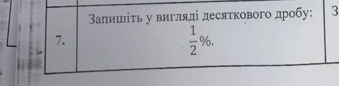 Срочно у нас контороша!!!!! 7. Запишіть у вигляді десяткового дробу: 1|2 - %.
