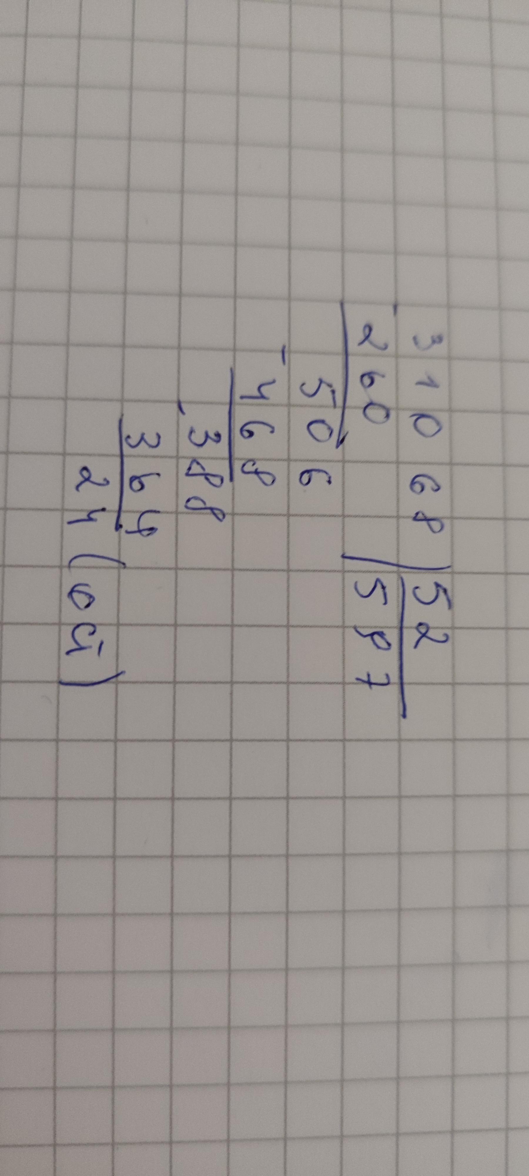Решите пожалуйста в столбик деление с остатком: 31068 : 52