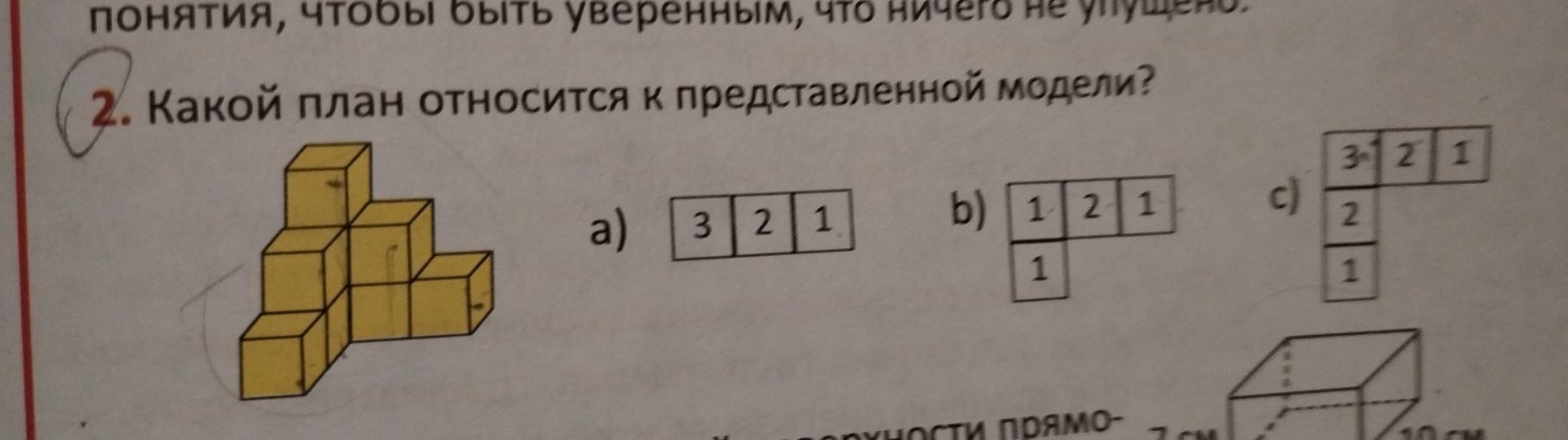 Відповідь с, тому що на схемі все добре понятно. Що посередні 3 кубика а потім 2 , потім 1, і так з двох сторін