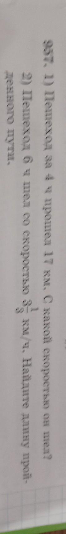 21. 957. 1) Пешеход за 4 ч прошел 17 км. С какой скоростью он шел? 2) Пешеход 6 ч шел со скоростью 33 км/ч. Найдите длину прой- денного пути. aro 1) Вони из залумачн